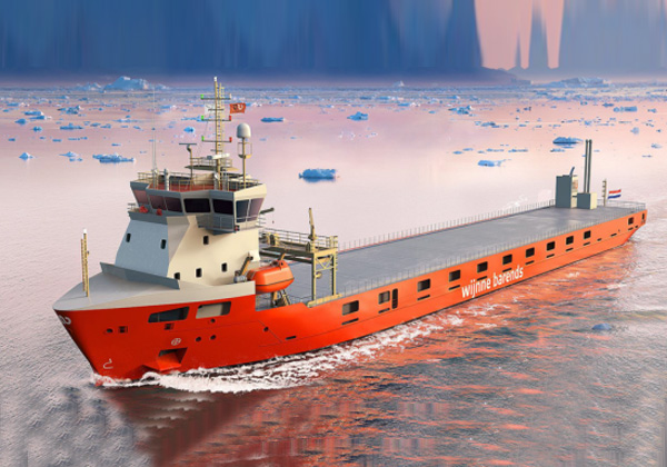 該船船長(zhǎng)115.2米,型寬16.5米,型深8.5米,吃水6.20米,設(shè)計(jì)航速約14.0節(jié);動(dòng)力系統(tǒng)采用LNG、燃油雙燃料推進(jìn),符合1AFS冰區(qū)及-30℃環(huán)境溫度條件下正常航行。